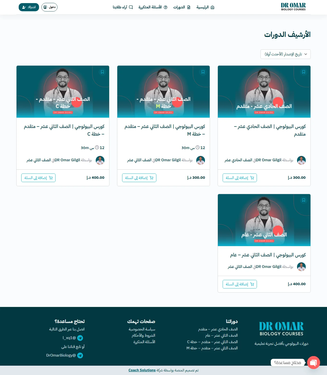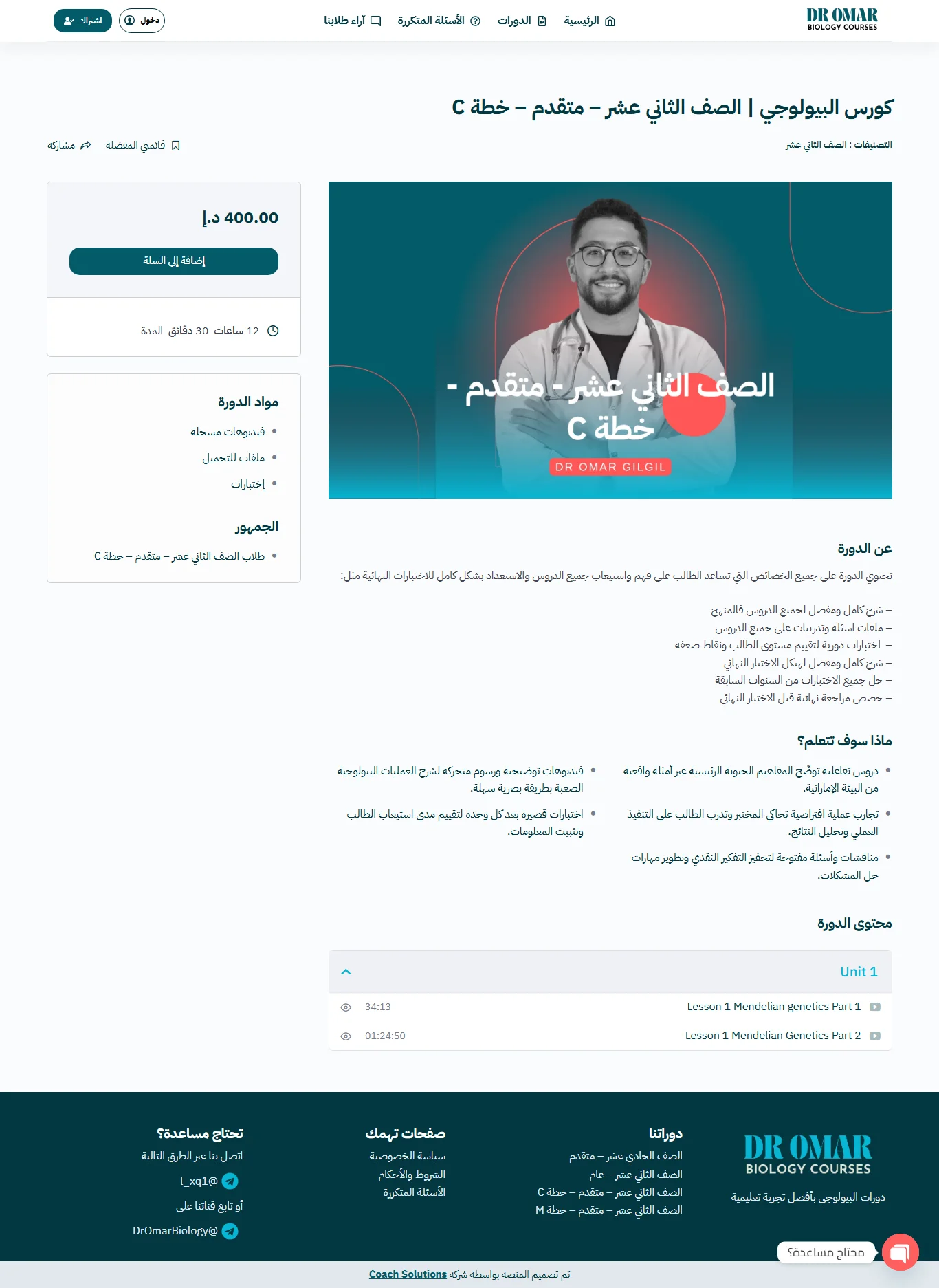 منصة متخصصة لتقديم دورات تدريبية في مادة البيولوجي لطلبة الثانوية في دولة الإمارات العربية المتحدة